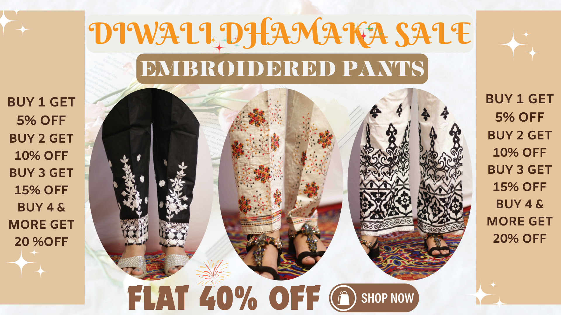 Beige Multi Embroidered Pant