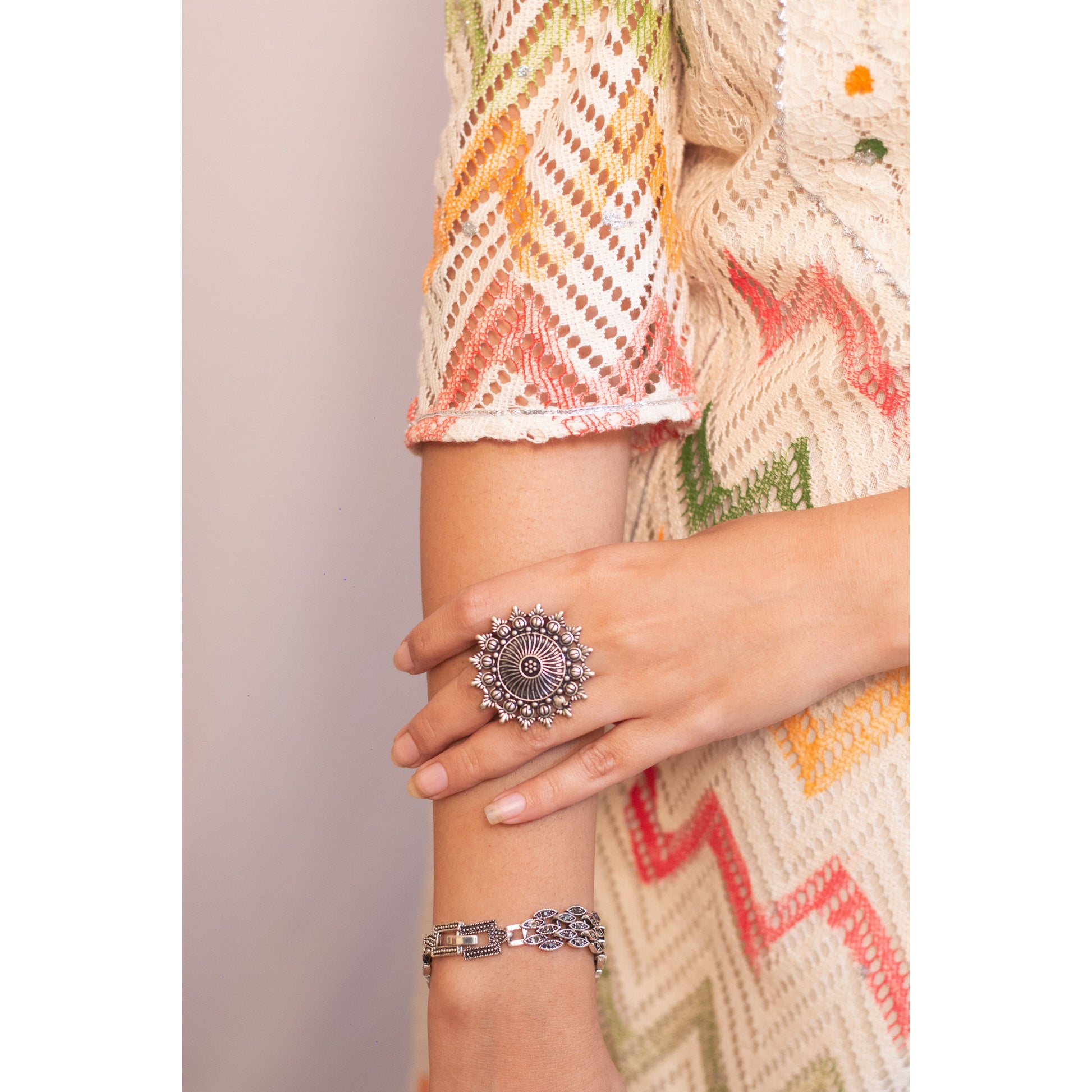 Style this Schffli Kurti Suit Set with White Flats or heels or juttis with dangler earrings and choker necklace.