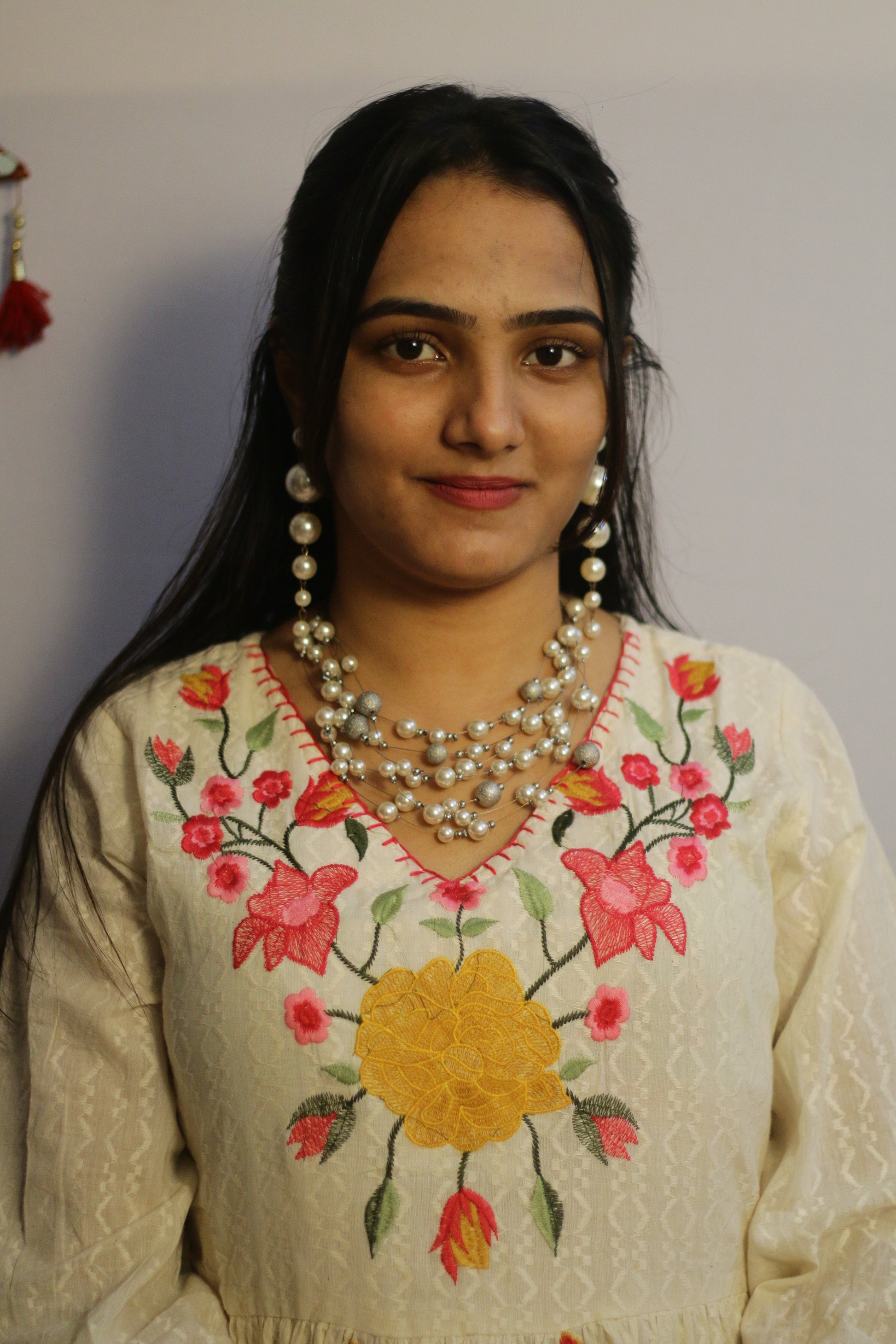 Pair your Zuri Ivory Bloom Dress with statement pearl jewelry and neutral flats for an effortlessly elegant look. Add a potli or sling bag for a soft ethnic touch that transitions beautifully from day to evening.